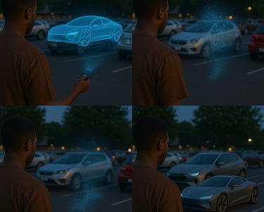 The VIBRA-KEYS™ system is a pocket-sized quantum-nano interface that deploys a full-scale MyFlyingCar™ vehicle composed entirely of programmable nanometals — built to form and dissolve at will via a single conscious command.